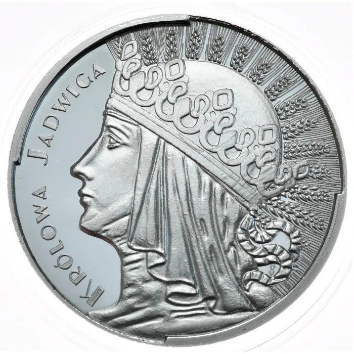 Prezentujemy kolejny po Lunie medal, tym razem poświęcona Królowej Jadwidze. Królowa Jadwiga (Jadwiga Andegaweńska) była polską królową, która panowała w latach 1384-1399. Urodziła się w 1373 roku jako córka Ludwika Węgierskiego i Elżbiety Bośniackiej. Po śmierci swojego ojca Ludwika Węgierskiego, Jadwiga została wybrana na króla Polski w wieku 10 lat przez polski sejm w 1384 roku. Była pierwszą kobietą, która została koronowana na króla Polski. W wyniku jej małżeństwa z Władysławem II Jagiełłą powstał sojusz Polski i Litwy, co doprowadziło do unii polsko-litewskiej. Jadwiga była znana ze swojego umiłowania do ludzi i dobroczynności, a także ze swojego oddania religii. W 1997 roku została kanonizowana przez Kościół katolicki jako święta.