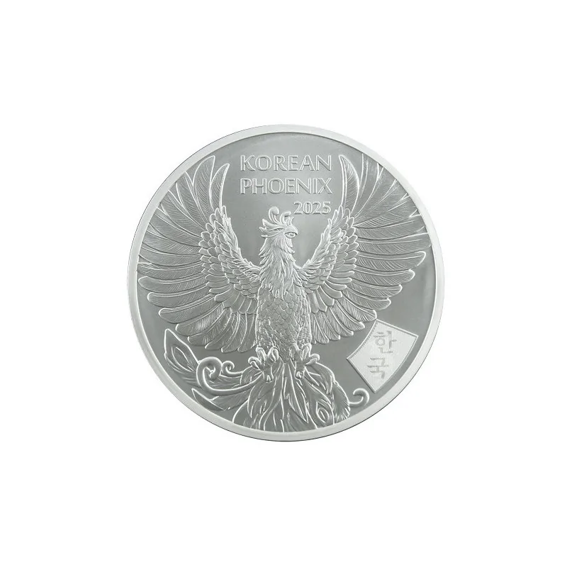 Rewers srebrnego medalu ukazuje koreańskiego feniksa z szeroko rozpostartymi skrzydłami i szponami skierowanymi w stronę obserwatora, co nadaje mu dynamiczny, niemal żywy charakter. Po prawej stronie kompozycji umieszczono specjalne zabezpieczenie, którego obraz zmienia się w zależności od kąta patrzenia, podkreślając wyjątkowość i prestiż waloru. Awers medalu zdobi pieczęć z dwiema zwróconymi ku sobie głowami feniksa – symbolem jedności i harmonii. Poniżej widnieje znak producenta, a także informacje dotyczące próby srebra oraz wagi, co dopełnia elegancką i symboliczną całość projektu.