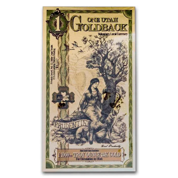 1 Utah Goldback to wyjątkowy produkt o wadze 1/1000 uncji wykonany z 24-karatowego złota.